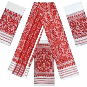 The traditional Assamese Gamusa or Gamosa is the symbol of Assamese culture and tradition. Gamusa is used to honour elders and younger ones alike and portrays a high degree of respect. Also, Gamusa is an integral part of all rites and ceremonies in Assam. This hand woven Gamusa is made of high quality Cotton, adorned…