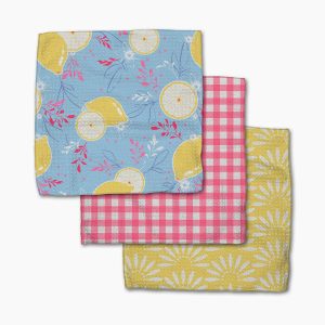 Our Dishcloths are everything you love about the original Geometry Kitchen Towel – in mini-size! Scrub, wipe, shine and repeat – our fast-drying, super-absorbent dishtowels can handle your biggest messes with ease (and a whole lot of style). Created from our signature Geoweave fabric, perfect for surface cleaning and shining. Sold as a set of 3.