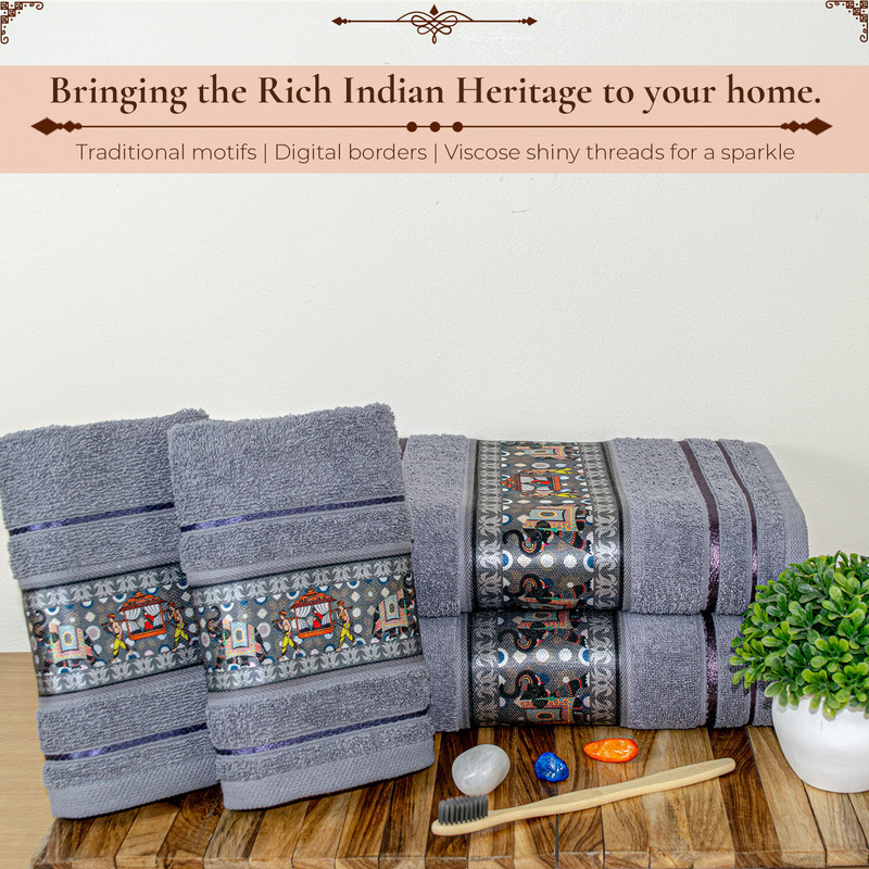 RANGOLI Cotton 440 GSM Bath, Hand Towel Set(Pack of 4)