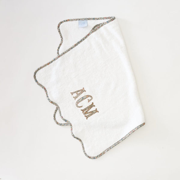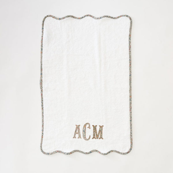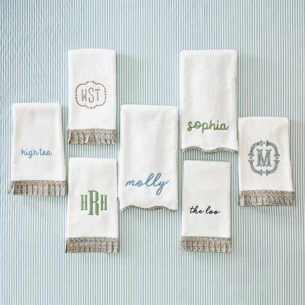 Our scallop trim adds an instant touch of whimsy and charm to any bath. After years of perfecting, this unexpected detail is hand-cut and hand-finished with the same level of craftsmanship and precision as our best-selling Signature Hand Towels. Our Scallop Hand Towels are plush, absorbent, and designed with a hanging loop to help them dry faster between uses. With piping made extra-special by Liberty London’s ‘Katie and Millie’ print-a ditsy floral that adds both cheer and sophistication.