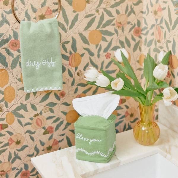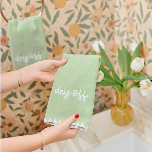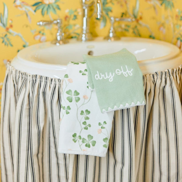 Stitched Edge Powder Bath Towels (pair) White on Green