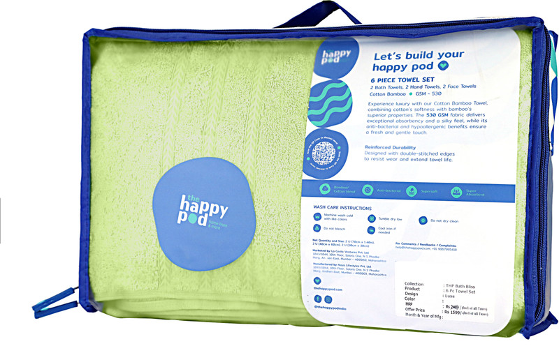 The Happy Pod Bamboo 530 GSM Bath, Face, Hand Towel Set(Pack of 6)